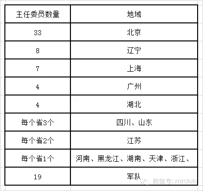 在地域分布上,88位現(xiàn)任主任委員中有近四成(33位)來自北京的單位,實(shí)力雄厚的遼寧、上海和北京相比,也被甩出好幾十條街,可見帝都的霸氣。