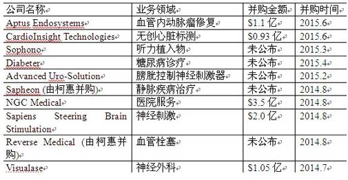 自2015年起,美敦力在投資并購的道路上高歌猛進。繼2014年完成了Visualase、Reverse