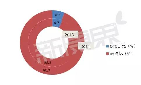 在浙江省的等級(jí)醫(yī)院中,RX藥品占據(jù)9成以上的市場(chǎng)份額,OTC藥品僅有6%左右的市場(chǎng)份額。