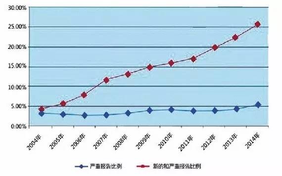 其中,中藥注射劑依然值得關(guān)注:2014年全國藥品不良反應(yīng)監(jiān)測網(wǎng)絡(luò)共收到中藥注射劑報(bào)告12.7萬例次,其中嚴(yán)重報(bào)告占6.7%。與2013年相比,中藥注射劑報(bào)告數(shù)量增長5.3%,高于總體報(bào)告增長率;嚴(yán)重報(bào)告數(shù)量增長26.0%,與總體嚴(yán)重報(bào)告增長情況基本一致。