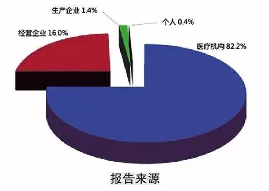 統(tǒng)計(jì)分析顯示,醫(yī)療機(jī)構(gòu)仍是不良反應(yīng)報(bào)告的主要來源,占報(bào)告數(shù)量的82.2%,藥品經(jīng)營企業(yè)的報(bào)告占16.0%,藥品生產(chǎn)企業(yè)的報(bào)告占1.4%,個(gè)人及其他來源的報(bào)告占0.4%。與2013年相比,醫(yī)療機(jī)構(gòu)報(bào)告增長明顯,藥品生產(chǎn)企業(yè)報(bào)告比例與既往持平,經(jīng)營企業(yè)報(bào)告比例繼續(xù)下降。