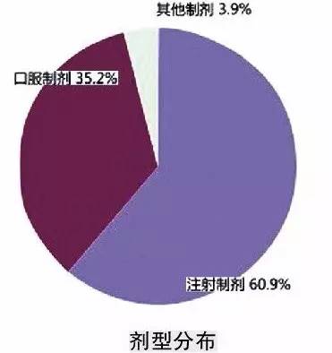 從涉及藥品劑型看,注射劑報(bào)告數(shù)在2014年比例仍然較高,占60.9%,較2013年提高2.2個(gè)百分點(diǎn);口服制劑比例占35.2%。