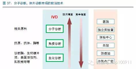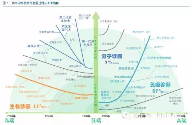 生化診斷:競爭日趨激烈,但隨著醫(yī)療中樞的下移,基層市場對性價比較高的生化診斷需求釋放,穩(wěn)健發(fā)展有望維持。免疫診斷:酶聯(lián)免疫的化學(xué)發(fā)光替代大勢所趨,技術(shù)領(lǐng)先企業(yè)將率先享受技術(shù)溢價。分子診斷:市場占比最小,發(fā)展最快的子行業(yè)。隨著基因測序的興起,有望成為IVD行業(yè)的主流之一。