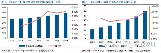 目前,國內(nèi)體外診斷行業(yè)(IVD,In-Vitro Diagnostics)正逐步崛起。相對于國外成熟市場,國內(nèi)呈現(xiàn)基數(shù)小、增速快的特點。受醫(yī)??刭M影響,國內(nèi)醫(yī)療機構(gòu)15%藥品加成逐步取消,診斷等醫(yī)療項目“此消彼長”。我們認為IVD行業(yè)有望受益于醫(yī)改的大趨勢,長時間保持較快的成長速度。