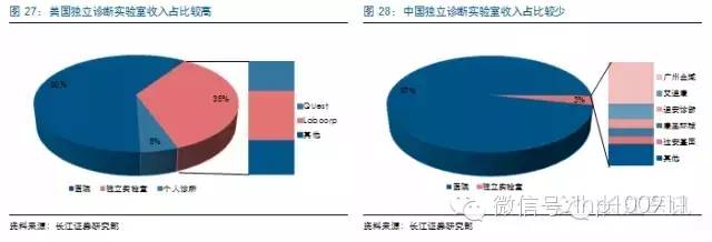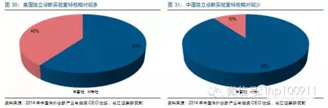 集中度相對較低,空間廣闊。美國獨立診斷實驗室發(fā)展已相對成熟,在550億美元的醫(yī)學(xué)檢測市場中約占35%份額,且為Quest、Labcorp等大型診斷公司所壟斷,其中Quest占比25.71%,Labcorp42.86%。國內(nèi)獨立診斷試驗室集中度相對較小,2013年收入占醫(yī)學(xué)診斷市場的比例約為3%。假如以美國IVD行業(yè)占比測算國內(nèi)IVD當前的市場空間即有600億元,市場空間廣闊。