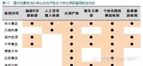國內(nèi)目前基因檢測技術(shù)主要運用于個體化用藥基因檢測與無創(chuàng)產(chǎn)前DNA檢測,兩者均是未來個體化醫(yī)療的重要前提。無創(chuàng)產(chǎn)檢是未來新生嬰兒重要的個體化醫(yī)學(xué)檢測,個體化用藥基因檢查則是更為直接的個體化診斷措施。