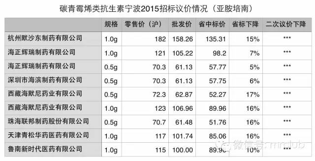 今年可能半數(shù)藥企尤其是外企低估了招標帶來的市場準入的威脅,下面以碳青霉烯類抗生素在從浙江省標到寧波二次議價為例,看看各企業(yè)情況。