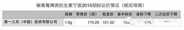 碳青霉烯類抗生素原研藥廠家里估計就第一三共輕松些,因為帕尼培南是獨家的,但廠家也做好了迎接全國招標的準備,降價11個點。