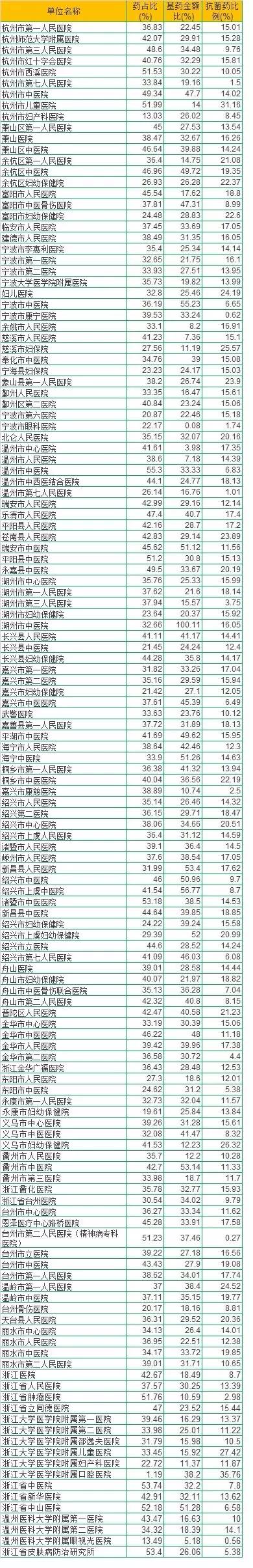浙江138家等級醫(yī)院三大指標(biāo):藥占比+基藥比+抗生素比