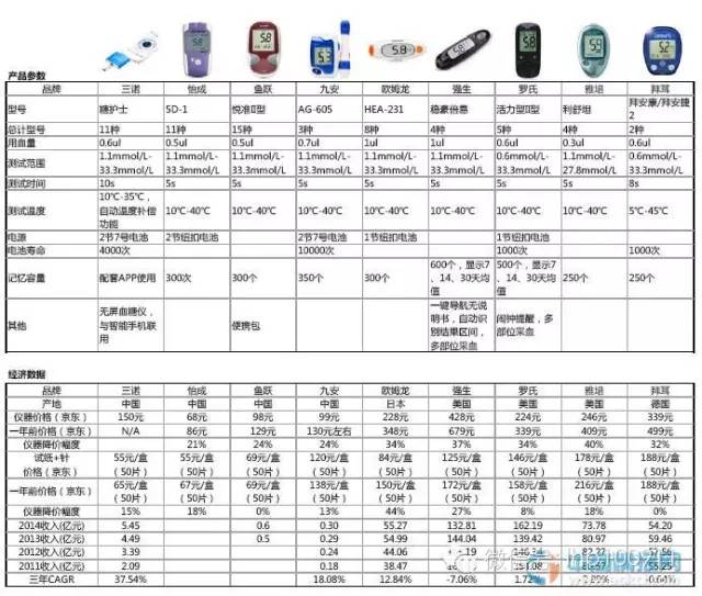 伴隨糖尿病檢測的行業(yè)高毛利以及血糖監(jiān)測技術(shù)的日益成熟,行業(yè)進入者逐步增多,除了傳統(tǒng)的羅氏、強生、雅培、拜耳、歐姆龍等國際巨頭以及國內(nèi)較強的三年、怡成、魚躍、九安等品牌,外來進