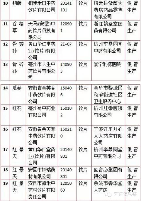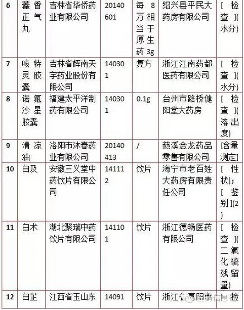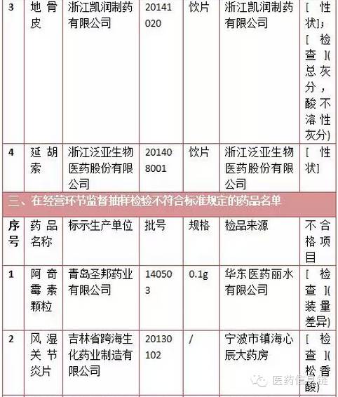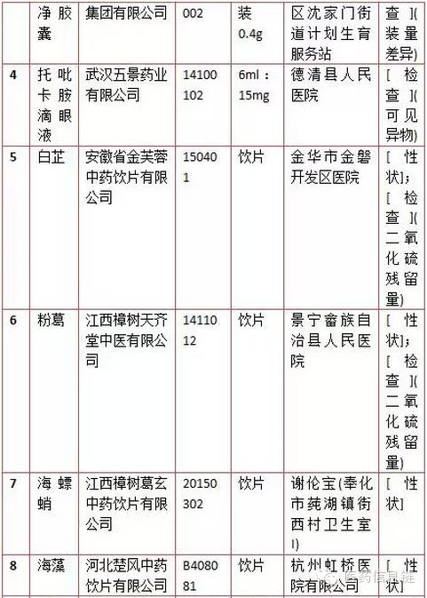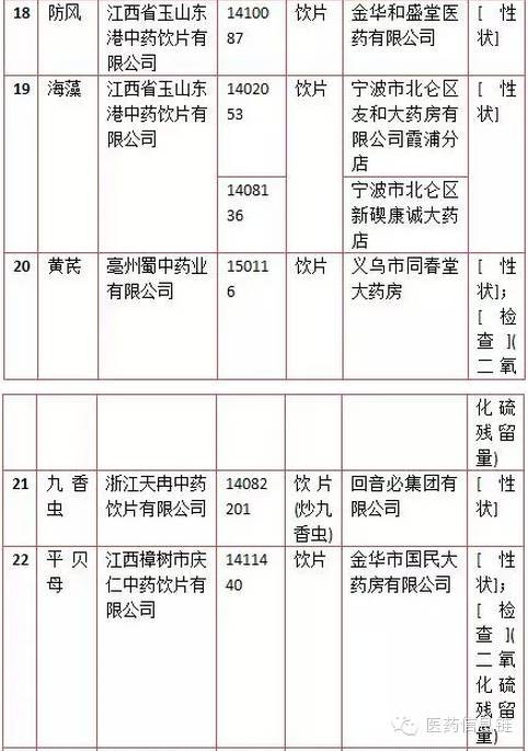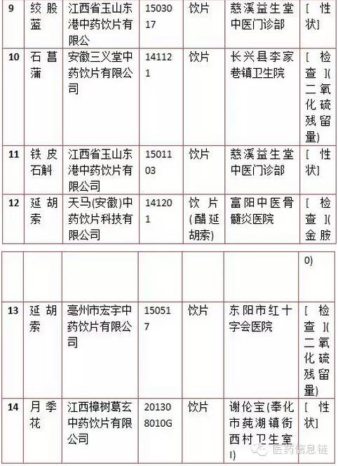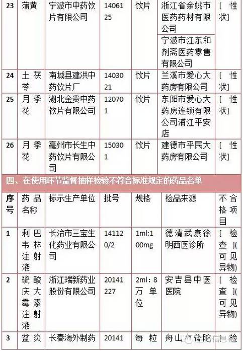 四、在使用環(huán)節(jié)監(jiān)督抽樣檢驗(yàn)不符合標(biāo)準(zhǔn)規(guī)定的藥品名單:有14批次,10批次為中藥飲片。