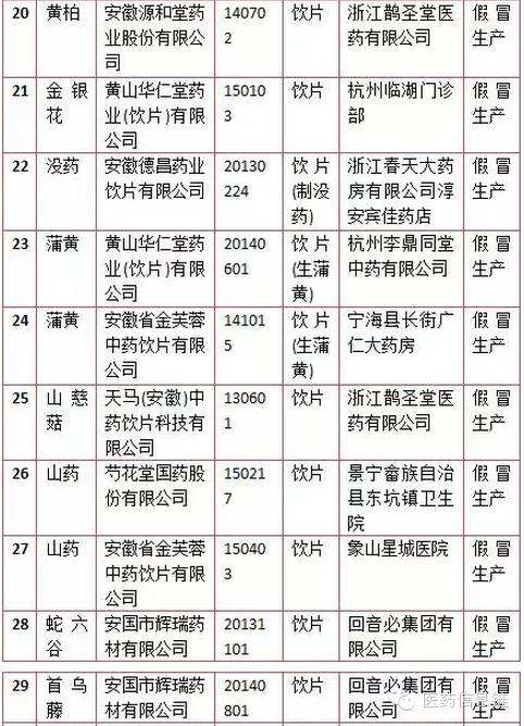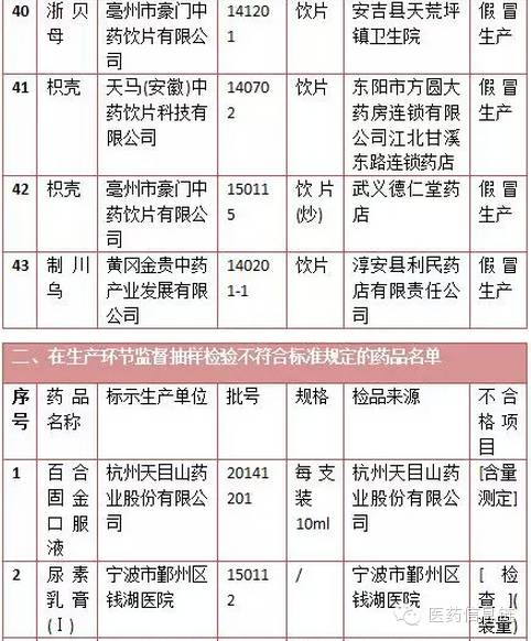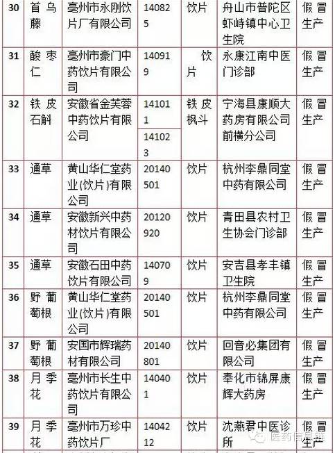 一、抽樣檢驗(yàn)不符合標(biāo)準(zhǔn)規(guī)定且假冒標(biāo)示生產(chǎn)單位生產(chǎn)的假藥:有44批次,43批次為中藥飲片。