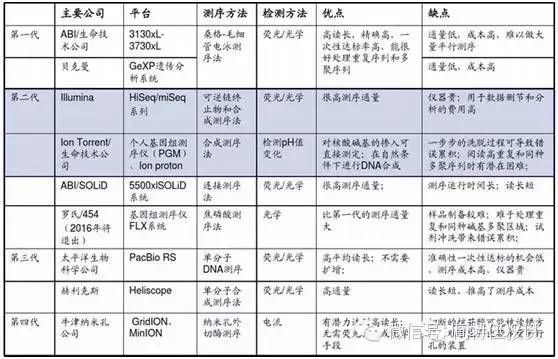 二代測(cè)序市場(chǎng)主流測(cè)序平臺(tái)主要是四大家:Illumina、Ion Torrent/Life Technologies (2014年被Thermo Fisher收購(gòu))、454 Life Sciences/Roche、 Pacific Biosciences。