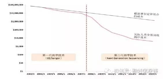 2008年,二代測(cè)序技術(shù)NGS的出現(xiàn)和推廣,讓測(cè)序成本開(kāi)始加速下降,并明顯超過(guò)摩爾定律的預(yù)測(cè)。
