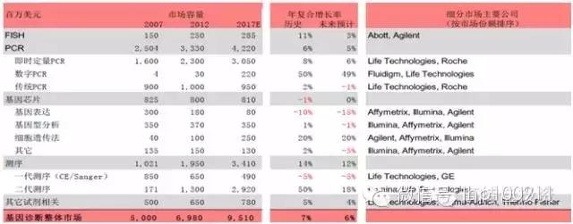 基因檢測(cè)主要技術(shù)的細(xì)分市場(chǎng)增速概況(全球)