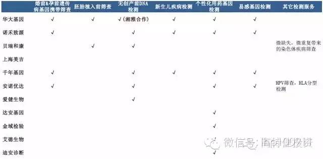 國(guó)內(nèi)主要第三方基因測(cè)序機(jī)構(gòu)覆蓋的基因檢測(cè)相關(guān)服務(wù)