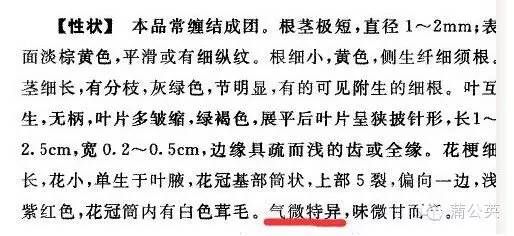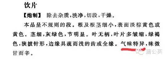 藥典一部117頁半邊蓮藥材性狀項(xiàng)下“氣微特異,味微甘而辛”,而在其飲片性狀項(xiàng)下“氣味特異,味微甘而辛”