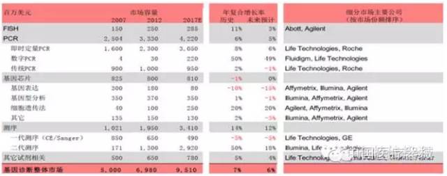 基因檢測(cè)主要技術(shù)的細(xì)分市場(chǎng)增速概況(全球)