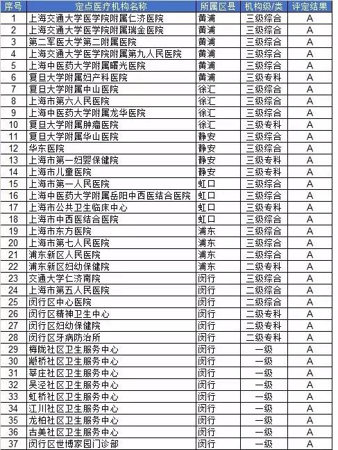 根據(jù)國家人力資源社會保障部《關(guān)于實行基本醫(yī)療保險定點醫(yī)療機構(gòu)分級管理的意見》(人社廳發(fā)〔2010〕9號)的精神和本市《關(guān)于印發(fā)<上海市基本醫(yī)療保險定點醫(yī)療機構(gòu)分級管理試行辦法>的通知》有關(guān)規(guī)定,經(jīng)本市醫(yī)保管理部門組織評定,擬確定37家定點醫(yī)療機構(gòu)為醫(yī)保A級定點醫(yī)療機構(gòu),現(xiàn)公示如下: