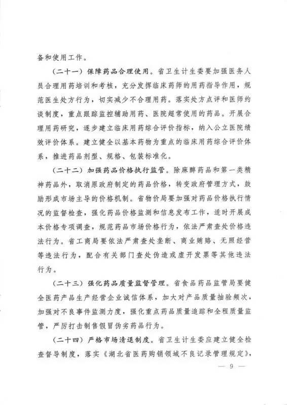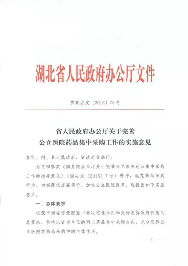 【云端按語】終于看到了關(guān)于完善湖北省藥品集中采購方案的紅頭文件,這次是湖北省政府辦公廳下發(fā)的實(shí)施意見。按照近期各省慣例,由省政府一級(jí)下發(fā)指導(dǎo)性實(shí)施意見,緊跟著就會(huì)有由該省衛(wèi)計(jì)委制定的細(xì)化采購方案出臺(tái)。