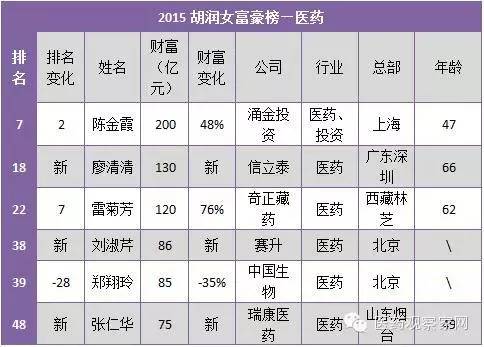 附:2015胡潤女富豪榜—醫(yī)藥