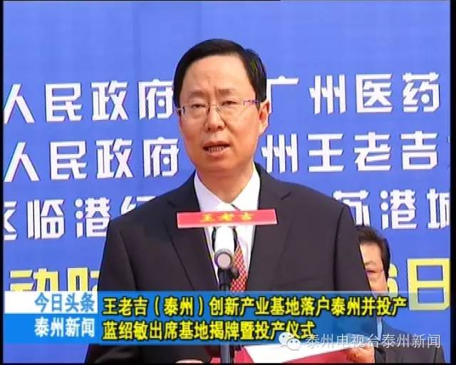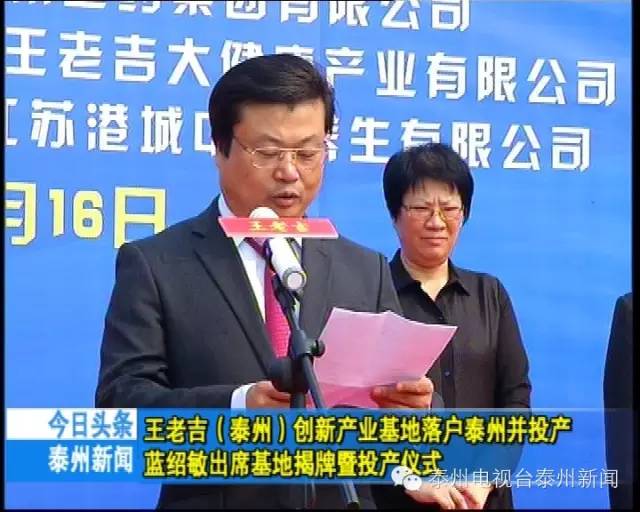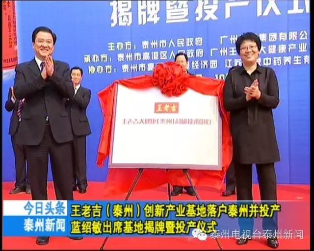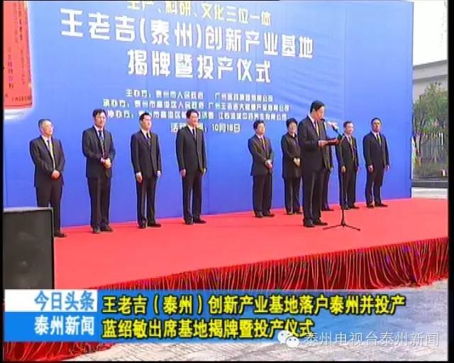 10月16日,我國(guó)涼茶行業(yè)著名品牌“王老吉”第一個(gè)創(chuàng)新產(chǎn)業(yè)基地在江蘇省泰州市落戶(hù),“王老吉”灌裝涼茶同時(shí)正式投產(chǎn)。江蘇省副省長(zhǎng)張雷發(fā)來(lái)賀信,泰州市市委書(shū)記藍(lán)紹敏、副市長(zhǎng)楊杰,廣州醫(yī)藥集團(tuán)有限公司黨委書(shū)記、董事長(zhǎng)李楚源參加活動(dòng)。