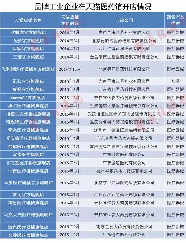 從2014年起,開(kāi)始有品牌工業(yè)企業(yè)(品牌醫(yī)療器械生產(chǎn)企業(yè)或品牌藥品生產(chǎn)企業(yè))和連鎖藥店合作,在天貓建立官方旗艦店。按照國(guó)家食品藥品監(jiān)督管理總局的規(guī)定,在網(wǎng)上直接銷售藥品和醫(yī)療器械需要多種經(jīng)營(yíng)資質(zhì),而且必須有完善的安全保障制度、配送制度等,而在天貓醫(yī)藥館開(kāi)店的連鎖企業(yè)早已能符合相關(guān)規(guī)定。因此促使不少知名品牌企業(yè)和連鎖企業(yè)緊密合作,既能規(guī)避政策要求,又能節(jié)省時(shí)間、成本,快速進(jìn)入電商領(lǐng)域。