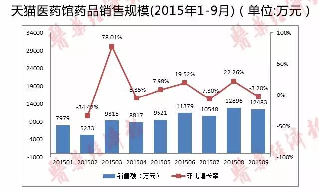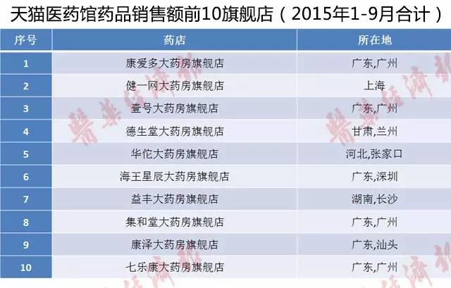 據(jù)店訊通統(tǒng)計(jì),2015年1-9月,天貓醫(yī)藥館229家旗艦店的銷售總額為41億元。