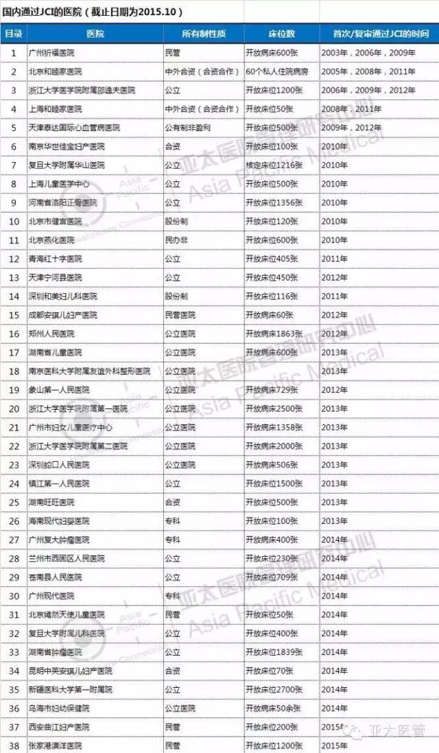 目前JCI已經(jīng)給世界40多個(gè)國家的公立、私立醫(yī)療衛(wèi)生機(jī)構(gòu)和政府部門進(jìn)行了指導(dǎo)和評審,13個(gè)國家的醫(yī)療機(jī)構(gòu)通過了國際JCI認(rèn)證,大陸通過JCI醫(yī)院有哪些呢?亞太醫(yī)管為您整理了已通過JCI認(rèn)證的大陸醫(yī)院列表,(截止至2015年9月)。最新最全的喲,快快轉(zhuǎn)發(fā)起來吧!