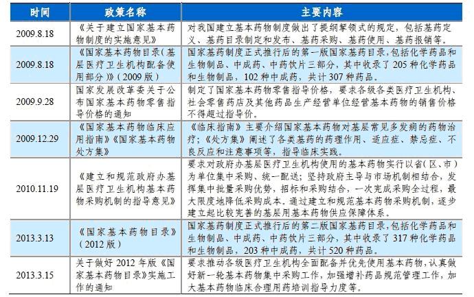 表1:2009年以來基本藥物制度主要政策