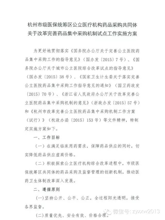 2015杭州市級醫(yī)保統(tǒng)籌區(qū)公立醫(yī)療機構藥品采購共同體關于改革完善藥品集中采購機制試點工作