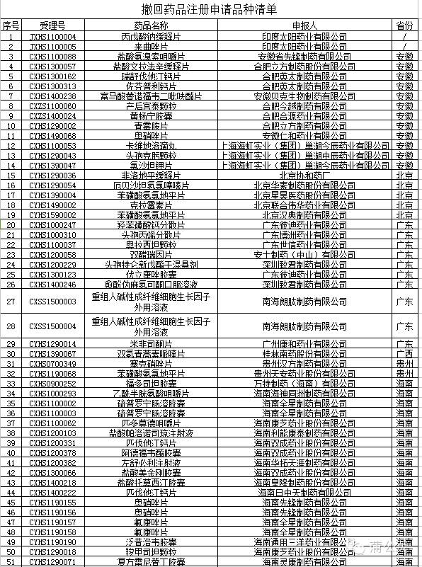 《關(guān)于廣東百科制藥有限公司等八個企業(yè)撤回注冊申請的公告》(國家食品藥品監(jiān)督管理總局公告2015年第222號)發(fā)布后,國家食品藥品監(jiān)督管理總局收到了90家企業(yè)提出的164個藥品注冊撤回申請(清單見附件)。