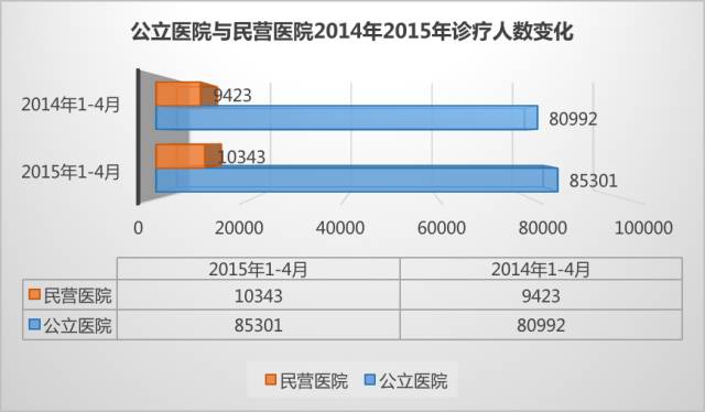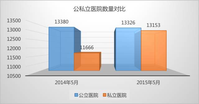 從衛(wèi)計委發(fā)布的數(shù)據(jù)可以看出,截止到2015年5月,民營醫(yī)院的數(shù)量“突飛猛進(jìn)”,在短短的一年時間內(nèi)增長了1487家。目前,從醫(yī)院數(shù)量的角度看,民營醫(yī)院已經(jīng)和公立醫(yī)院“平起平坐”。