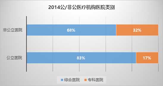 首先,公立醫(yī)院做綜合,私立醫(yī)院做專科。由于醫(yī)院重資本,強(qiáng)品牌的特點(diǎn),導(dǎo)致民營醫(yī)院創(chuàng)辦和運(yùn)營都面臨很多挑戰(zhàn),尤其是綜合性醫(yī)院挑戰(zhàn)更大。首先,創(chuàng)辦前資本投入大,綜合醫(yī)院由于科室多,因此固定成本比較高,涉及到大量多樣的醫(yī)務(wù)人員和設(shè)備儀器。這就給民營醫(yī)院初期投入提出了很高的要求。其次,由于大眾對(duì)醫(yī)院品牌非常重視,而品牌的塑造不僅需要優(yōu)秀的醫(yī)務(wù)人員,更需要時(shí)間的積累,在這一過程中,人力和財(cái)力的要求都非常高。因此,??漆t(yī)院資金投入較少,人員需求相對(duì)低的特點(diǎn),決定了民營醫(yī)院未來會(huì)在此領(lǐng)域發(fā)力。2014年非公立醫(yī)療機(jī)構(gòu)在??漆t(yī)院數(shù)量方面達(dá)到3676,超過了公立??漆t(yī)院的數(shù)量,數(shù)據(jù)也映證了我們的推斷。