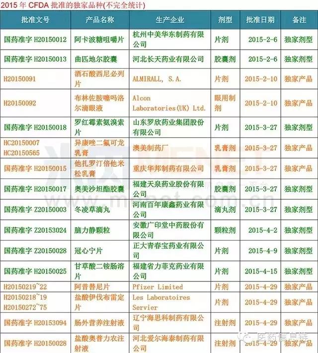 小編統(tǒng)計了2015年CFDA批準(zhǔn)的30個獨家品種,如下圖所示。