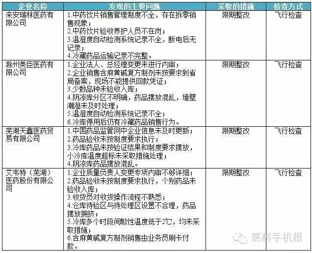 其中,安徽省藥監(jiān)局對10家藥企開展檢查,有4家藥企被責令限期整改。