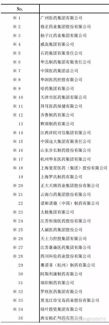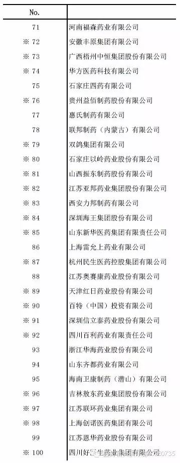 工信部公布——藥企100強(附名單)
