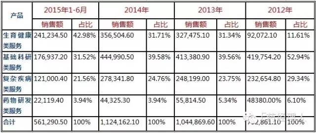 華大基因首度批露主營業(yè)務(wù)收入(單位:千元人民幣)