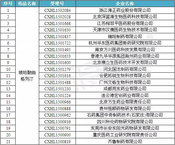如前文所述,我國(guó)現(xiàn)有1.1億糖尿病患者,且患病率呈逐年增高趨勢(shì)。DPP-Ⅳ因療效確切,安全性和耐受性良好已成為口服降糖藥中的佼佼者,并已幾乎占領(lǐng)全球降糖藥市場(chǎng)的1/3。長(zhǎng)效DPP-Ⅳ抑制劑因每周僅需給藥一次而提高患者給藥的簡(jiǎn)便性和依從性更是受到醫(yī)學(xué)界的高度關(guān)注。曲格列汀首獲上市不到一年的時(shí)間,國(guó)內(nèi)已有多家企業(yè)搶仿。迄今為止,我國(guó)CFDA已受理來(lái)自不同企業(yè)的21個(gè)原料藥和39個(gè)片劑的注冊(cè)申請(qǐng)(詳細(xì)信息見(jiàn)表4),預(yù)計(jì)后續(xù)還會(huì)有企業(yè)提出有關(guān)本品的注冊(cè)申請(qǐng)。