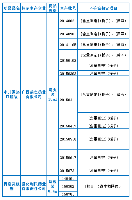 根據(jù)食藥總局12月23日的通報(bào),廣西榮仁藥業(yè)有限公司生產(chǎn)的小兒退熱口服液和通化利民藥業(yè)有限責(zé)任公司生產(chǎn)的胃康靈膠囊多批次產(chǎn)品經(jīng)檢驗(yàn)不符合規(guī)定,這反映該兩家企業(yè)質(zhì)量管理存在問題,尤其是在生產(chǎn)過程控制、無菌保障等方面存在嚴(yán)重缺陷。
