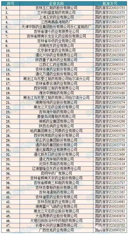 據(jù)國家藥監(jiān)總局數(shù)據(jù)查詢所得,目前擁有“精制冠心片”生產(chǎn)批文的企業(yè)共有48家(包含上述通報的4家企業(yè))。剩余的44家生產(chǎn)企業(yè)注意了,趕緊開展自查!