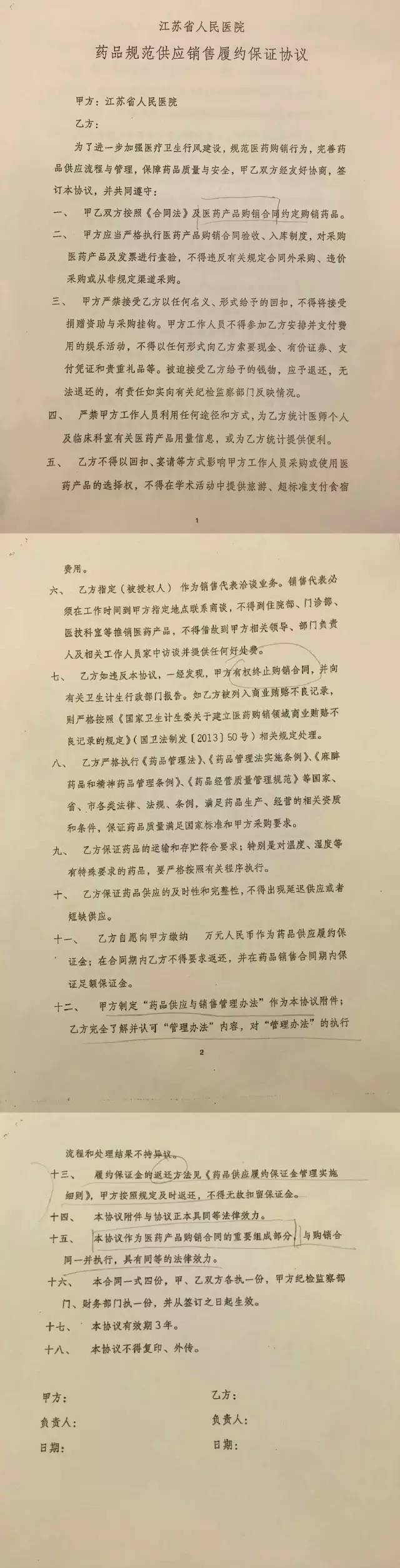 江蘇省人民醫(yī)院征繳保證金的消息一出,最大的爭議點就是醫(yī)院征繳保證金的目的。根據(jù)江蘇省人民醫(yī)院“藥品規(guī)范供應銷售履約保證協(xié)議”,該院設立保證金是為了進一步加強醫(yī)療衛(wèi)生行風建設,規(guī)范醫(yī)藥購銷行為,完善藥品供應流程與管理,保障藥品質(zhì)量與安全。