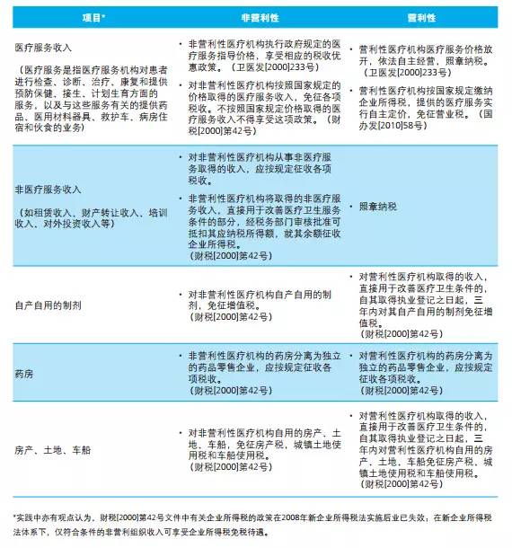 附錄:營利性和非營利性醫(yī)療機構(gòu)現(xiàn)行主要稅收政策對比表