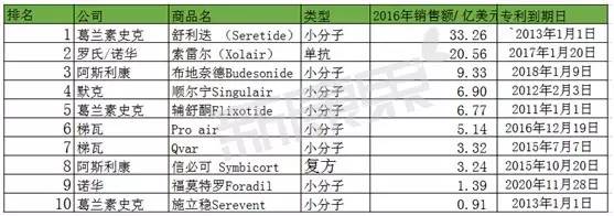 2016年10大哮喘藥物預(yù)測(cè):GSK優(yōu)勢(shì)明顯,梯瓦異軍突起