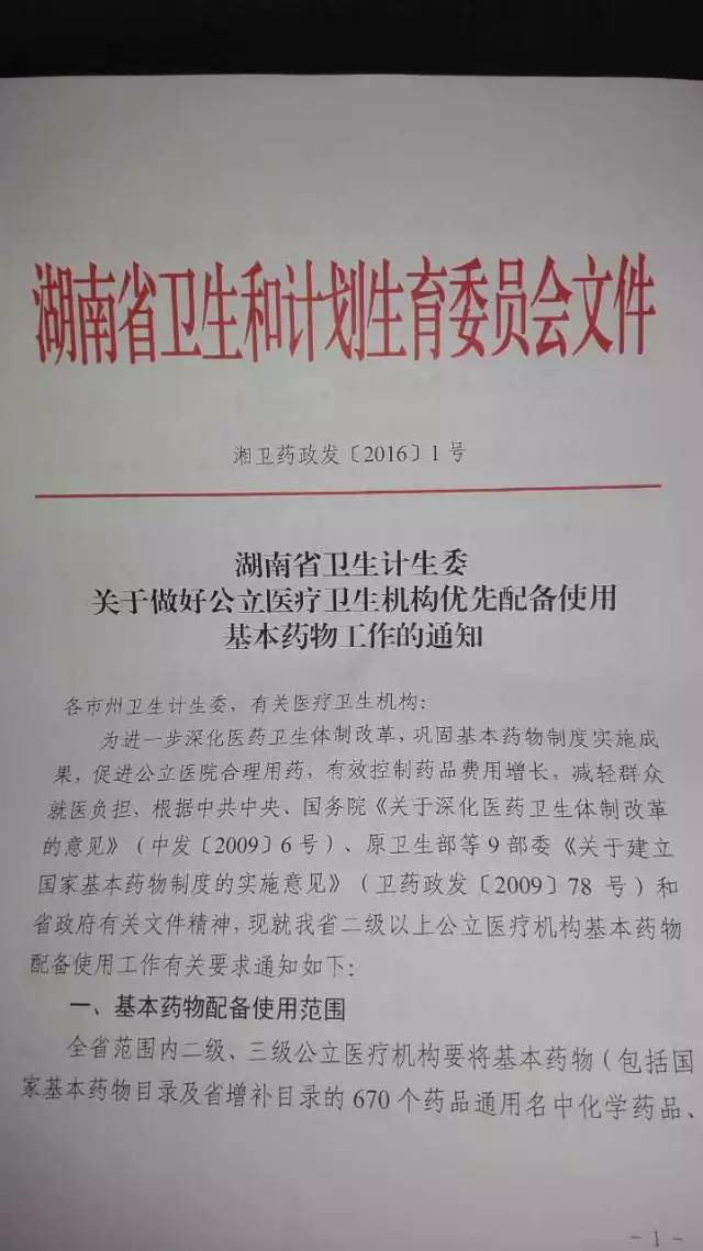 湖南衛(wèi)計(jì)委2016年1號(hào)文:優(yōu)先采購(gòu)基藥