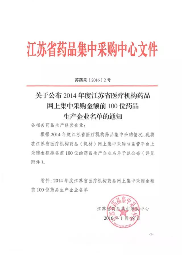 江蘇公布2014藥品采購百強(qiáng):招標(biāo)將獲高質(zhì)量層次