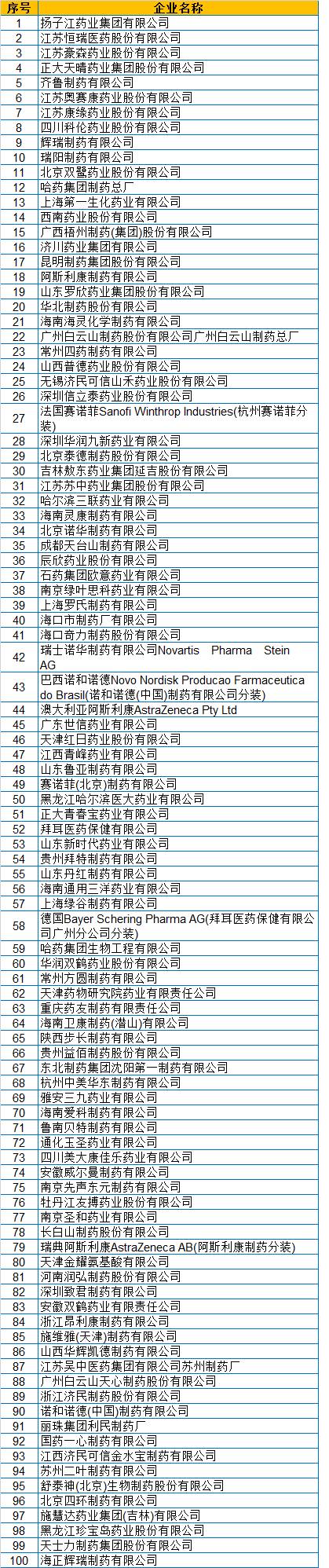 附件:2014年度江蘇省醫(yī)療機(jī)構(gòu)藥品網(wǎng)上集中采購金額前100位藥品生產(chǎn)企業(yè)名單
