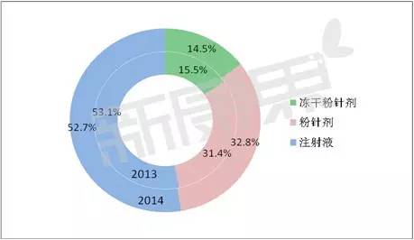 單抗主要有凍干粉針劑、粉針劑和注射液三種劑型。其中,單抗注射液的市場份額過半,其后依次是粉針劑和凍干粉針劑,三者的銷售額占比約為5:3:2。