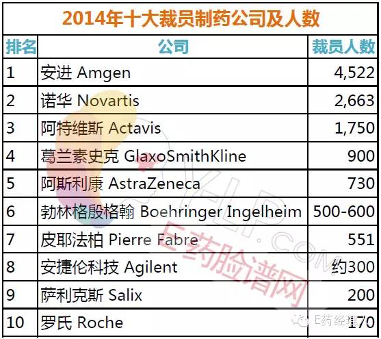 2014年,臉譜君曾經(jīng)總結(jié)了當(dāng)年的裁員年報(bào),包括了裁員人數(shù)居前的十大制藥公司。