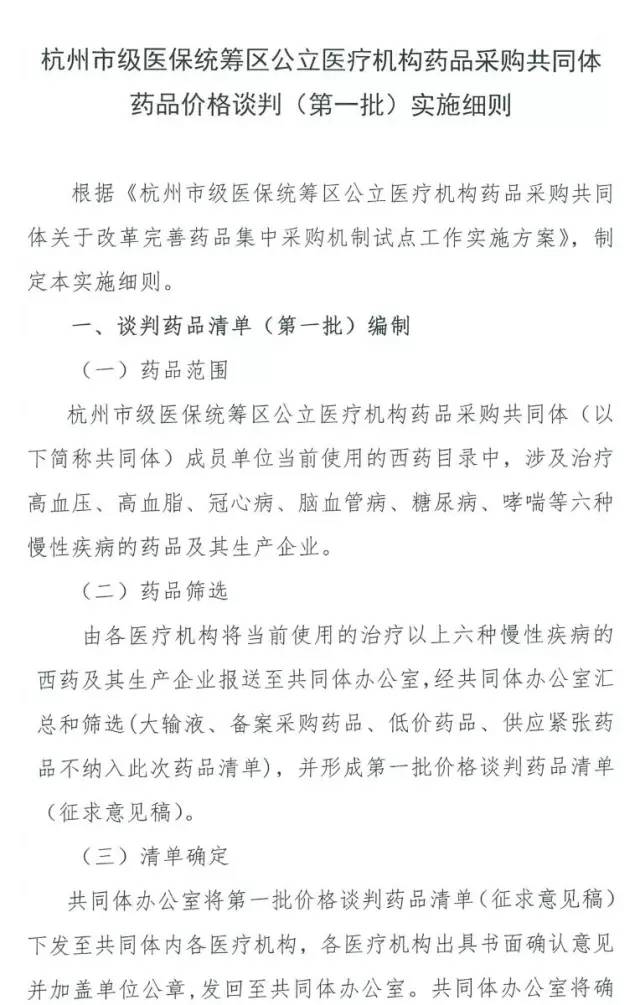 杭州采購共同體第一批價(jià)格談判的藥品清單包括501個(gè)品規(guī)數(shù),其中降壓藥135種,腦血管病藥103種,冠心病藥91種,降糖藥76種,哮喘藥56種,降脂藥40種。